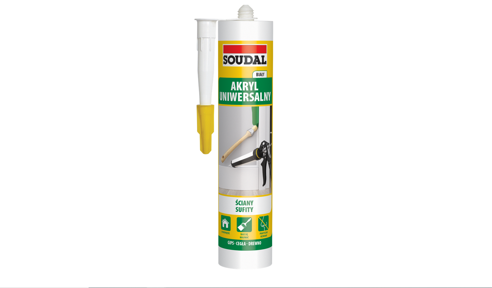 Akryl firmy SOUDAL nie zawiera rozpuszczalników, po utwardzeniu może być szlifowany i malowany. Przeznaczony jest do zastosowań wewnętrznych. Bardzo dobrze sprawdzi się m.in. przy wypełnianiu szczelin, rys i ubytków w betonie, murze i tynku, przy wypełnianiu spoin wokół ram drewnianych i metalowych oraz przy spoinowaniu fug o ruchomości maksymalnie do 15 %9.